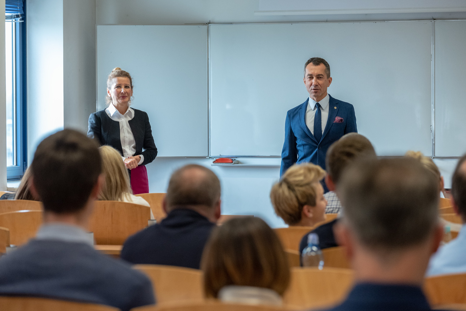W sobotę 27 października 2018 r. rozpoczęła się 13. edycja Podyplomowych studiów menedżerskich. Ich uczestnicy w trakcie poszczególnych zajęć zdobywać będą najnowszą wiedzę z zarządzania, finansów, marketingu i rachunkowości; wzbogacą swe kompetencje z zakresu innowacyjnego, a przede wszystkim efektywnego zarządzania przedsiębiorstwem. Będą mieli również szansę rozwinięcia bardzo ważnych umiejętności analizy strategicznej i projektowania strategii przedsiębiorstwa.