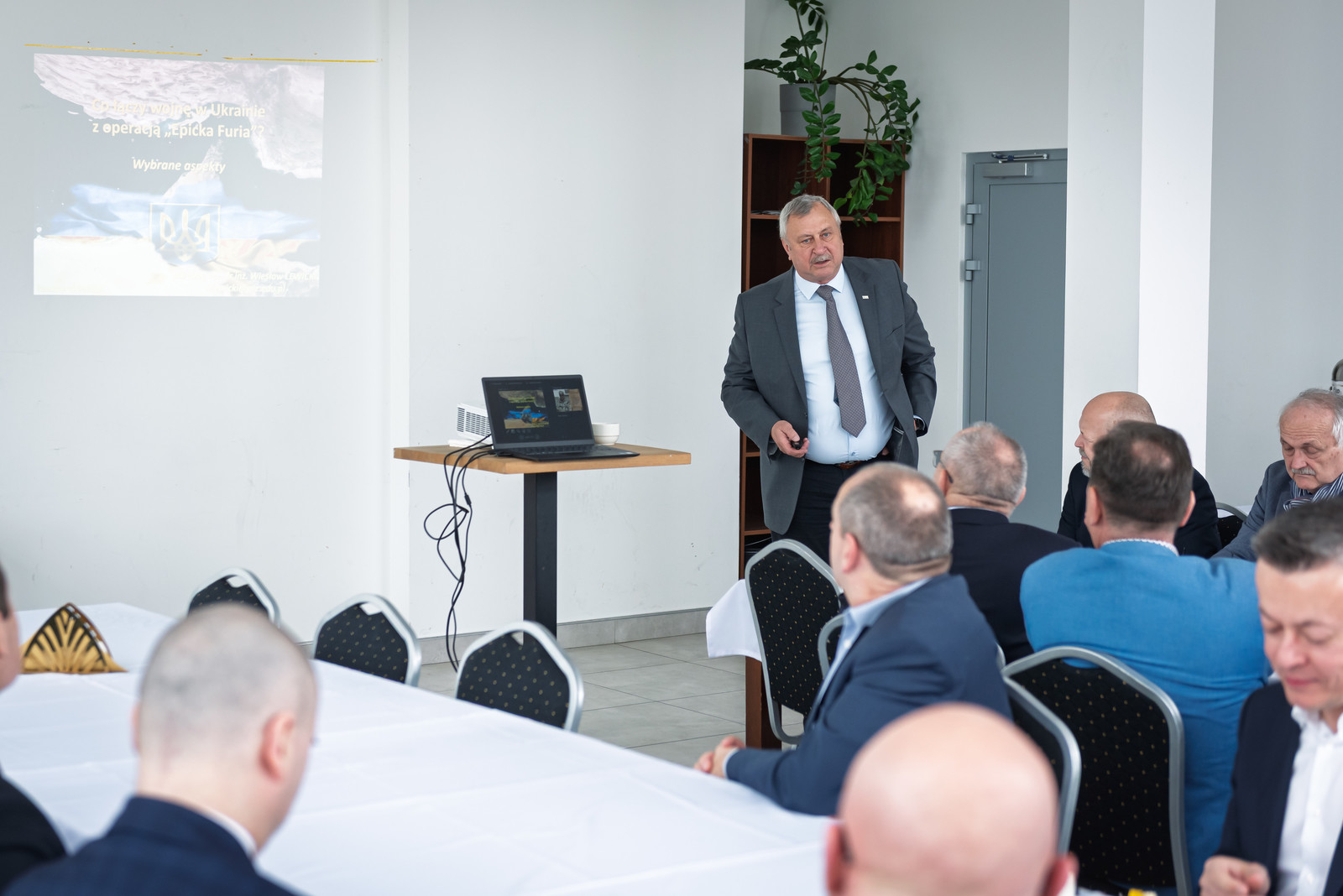 Uczestnicy mieli możliwość wysłuchania wystąpienia płk. dr. inż. Wiesława Lewickiego pt. Co łączy „Epicką furię” z wojną w Ukrainie, które jako niezwykle aktualne i poruszające zagadnienia o strategicznym znaczeniu dla gospodarki spotkało się z dużym zainteresowaniem i stało się punktem wyjścia do szerokiej dyskusji.
