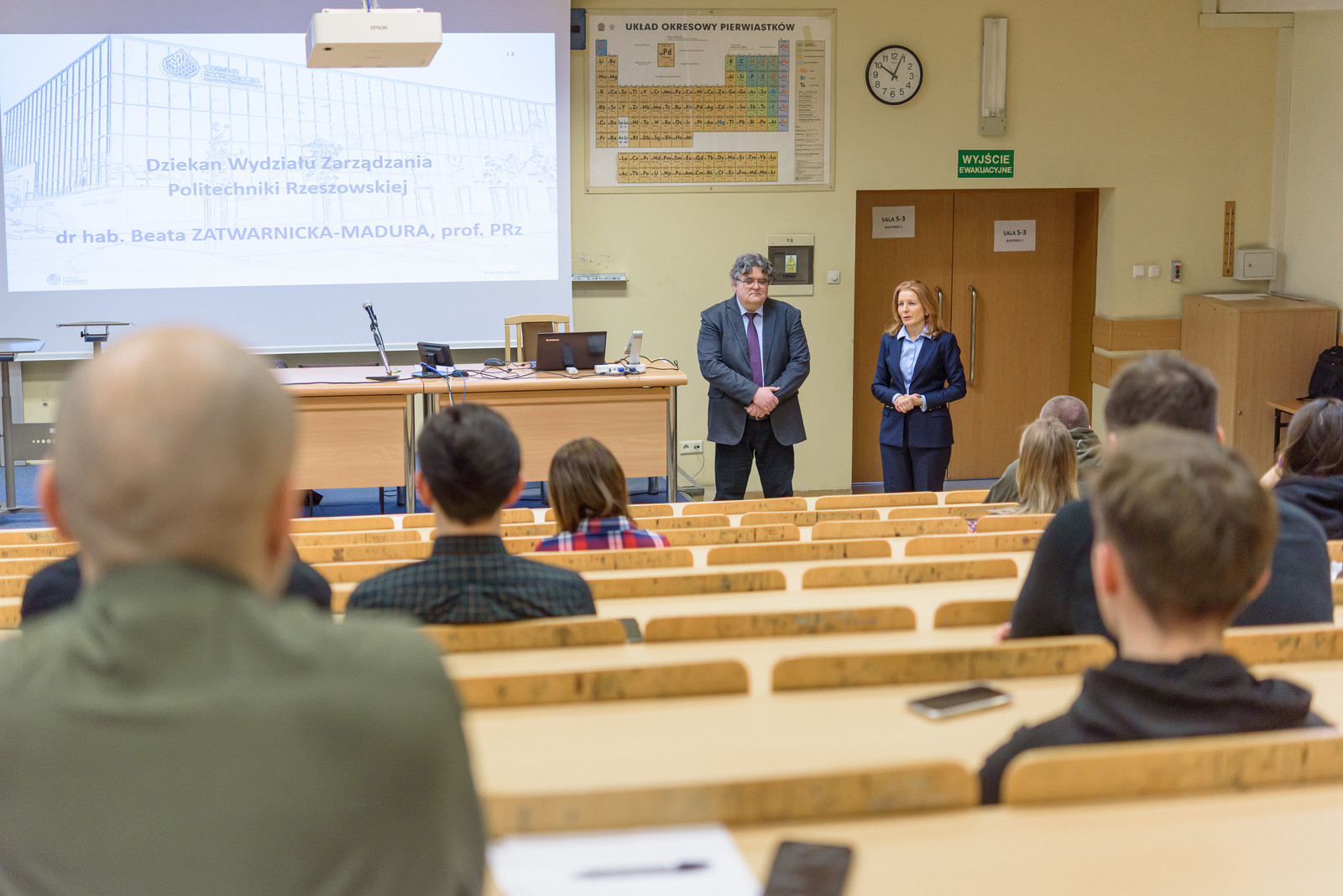 Uczestników powitali dr hab. Beata Zatwarnicka-Madura, prof. PRz, dziekan Wydziału Zarządzania oraz kierownik studiów podyplomowych Zarządzanie bezpieczeństwem i higieną pracy dr Adam Laska. Studia cieszą się niesłabnącym zainteresowaniem uczestników, o czym świadczy kolejna 34. edycja.