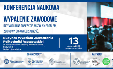 W dniu 13 czerwca 2025 r. na Wydziale Zarządzania Politechniki Rzeszowskiej im. Ignacego Łukasiewicza odbyła się konferencja poświęcona tematyce wypalenia zawodowego pod hasłem: „Wypalenie zawodowe –
