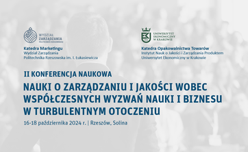 W dniach 16-18 października 2024 r. odbędzie się II Konferencja Naukowa „NAUKI O ZARZĄDZANIU I JAKOŚCI WOBEC WSPÓŁCZESNYCH WYZWAŃ NAUKI I BIZNESU W TURBULENTNYM OTOCZENIU”