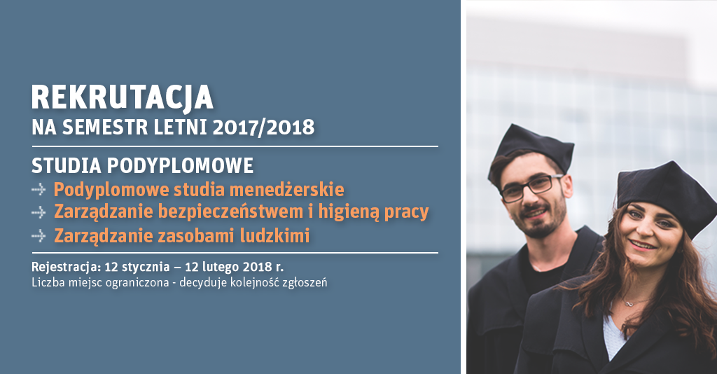 Rozpoczęła się rekrutacja na studia podyplomowe na semestr letni 2017/2018. Obecnie prowadzimy nabór na następujące kierunki studiów: