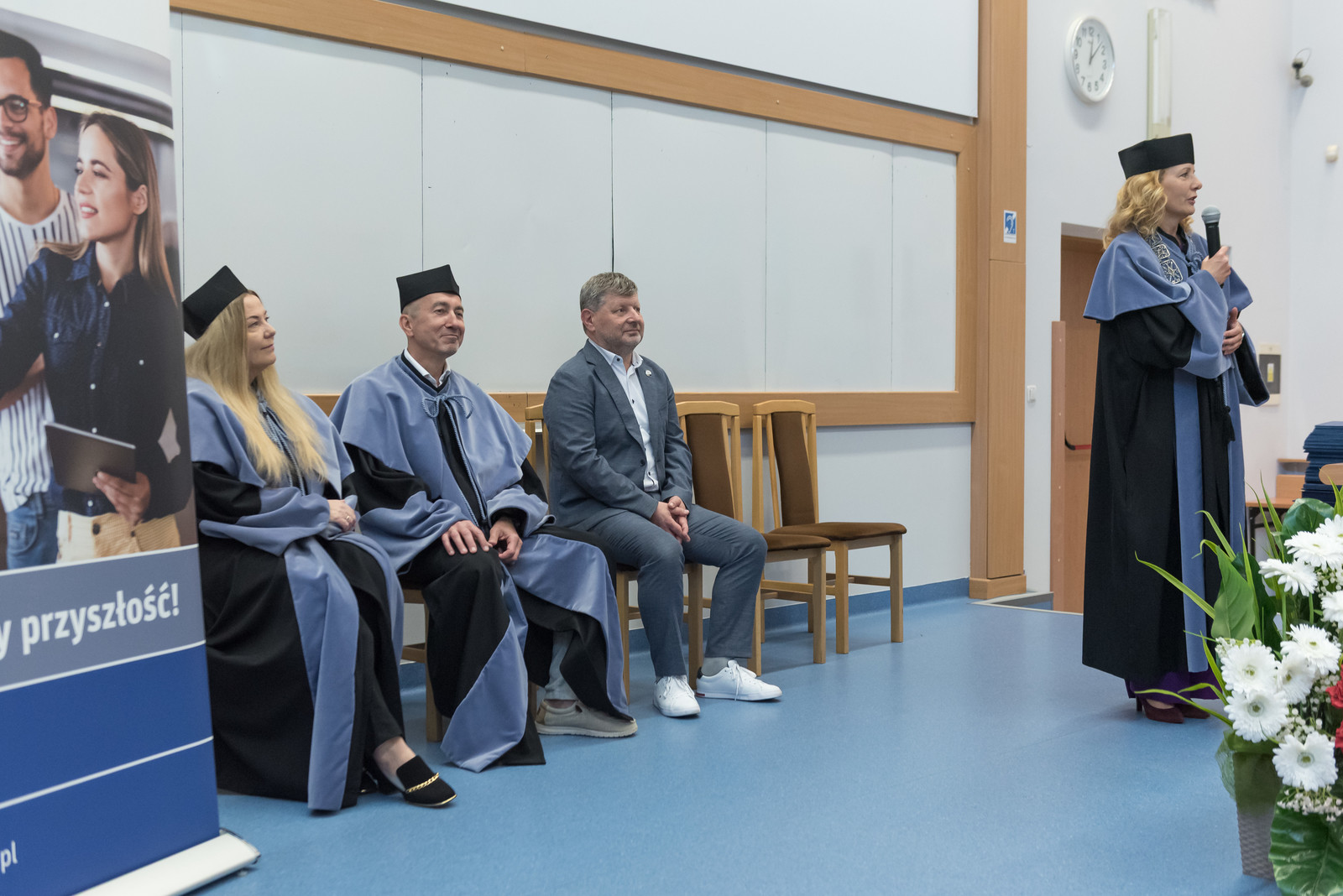 Uroczystość uświetnili swoją obecnością prof. dr hab. inż. Piotr Koszelnik – rektor Politechniki Rzeszowskiej, prof. dr hab. Grzegorz Ostasz – kierownik Centrum Studiów Podyplomowych Wydziału Zarządzania PRz. W ceremonii wzięły udział również: dr hab. Beata Zatwarnicka-Madura, prof. PRz – dziekan Wydziału Zarządzania Politechniki Rzeszowskiej i kierownik studiów MBA oraz dr Justyna Stecko – prodziekan Wydziału Zarządzania ds. kształcenia.